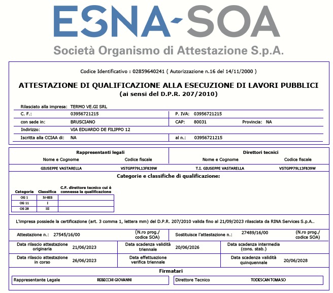 DOCUMENTAZIONE DITTA TERMO VEGI